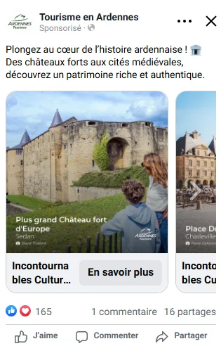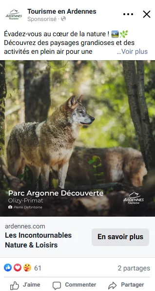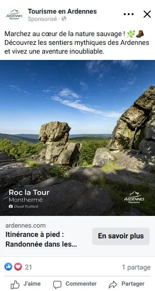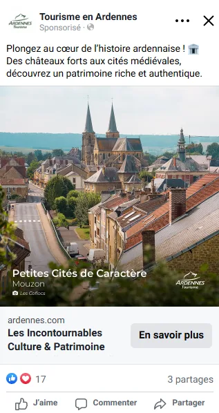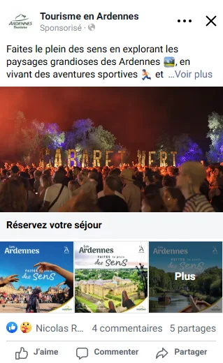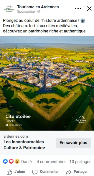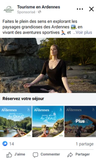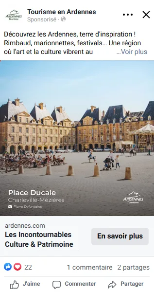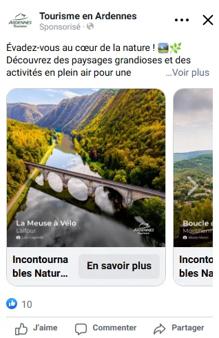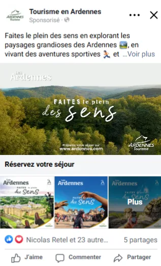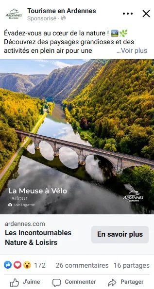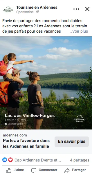 L’Agence de Développement Touristique des Ardennes a retenu cette année l’agence Yuri & Neil pour l’accompagner dans sa stratégie de publicité en ligne (stratégie d’acquisition paid media) avec la mise en place de campagnes de trafic vers ardennes.com sur Meta (Facebook et Instagram) et sur Google.