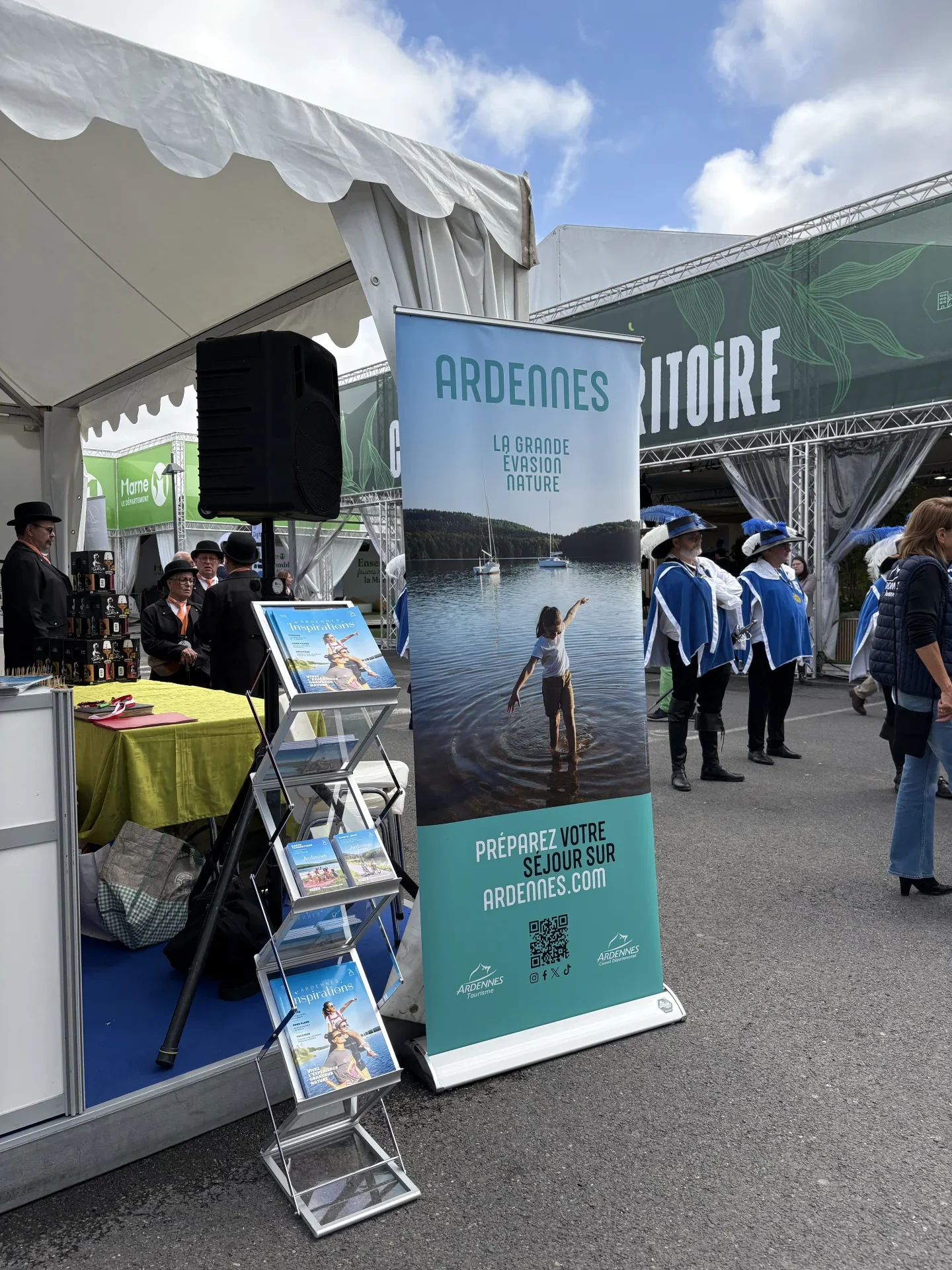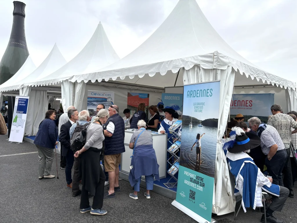 Le mardi 2 septembre 2025, l’Agence de Développement Touristique des Ardennes a eu le plaisir d’animer un stand de 25 m² idéalement situé sur le parvis d’honneur de la Foire de Châlons, stand 11 allée P, à deux pas de la célèbre bouteille géante de Champagne.