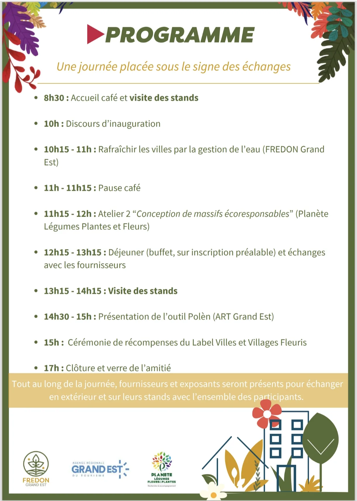 - Et enfin, la cérémonie de remise des récompenses du Label Villes et Villages Fleuris, moment fort de valorisation de l’engagement des communes.