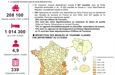 Comme chaque année, ADN Tourisme dresse un état lieu de l’offre touristique en meublés classés sur les territoires, grâce aux données transmises et saisies par les organismes de contrôle sur la plateforme Class. Chaque année, l’analyse du contenu de cette base permet à ADN Tourisme d’éditer un document spécifique « les chiffres-clés des meublés de...