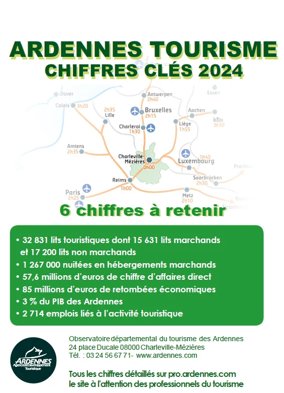 Condensé des chiffres clés de l’année N-1 du tourisme dans les Ardennes